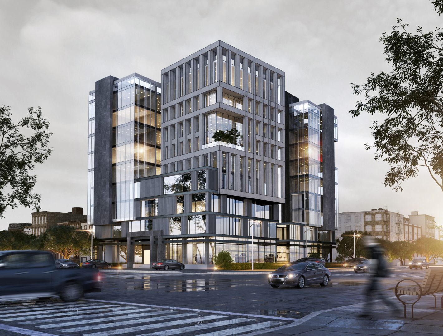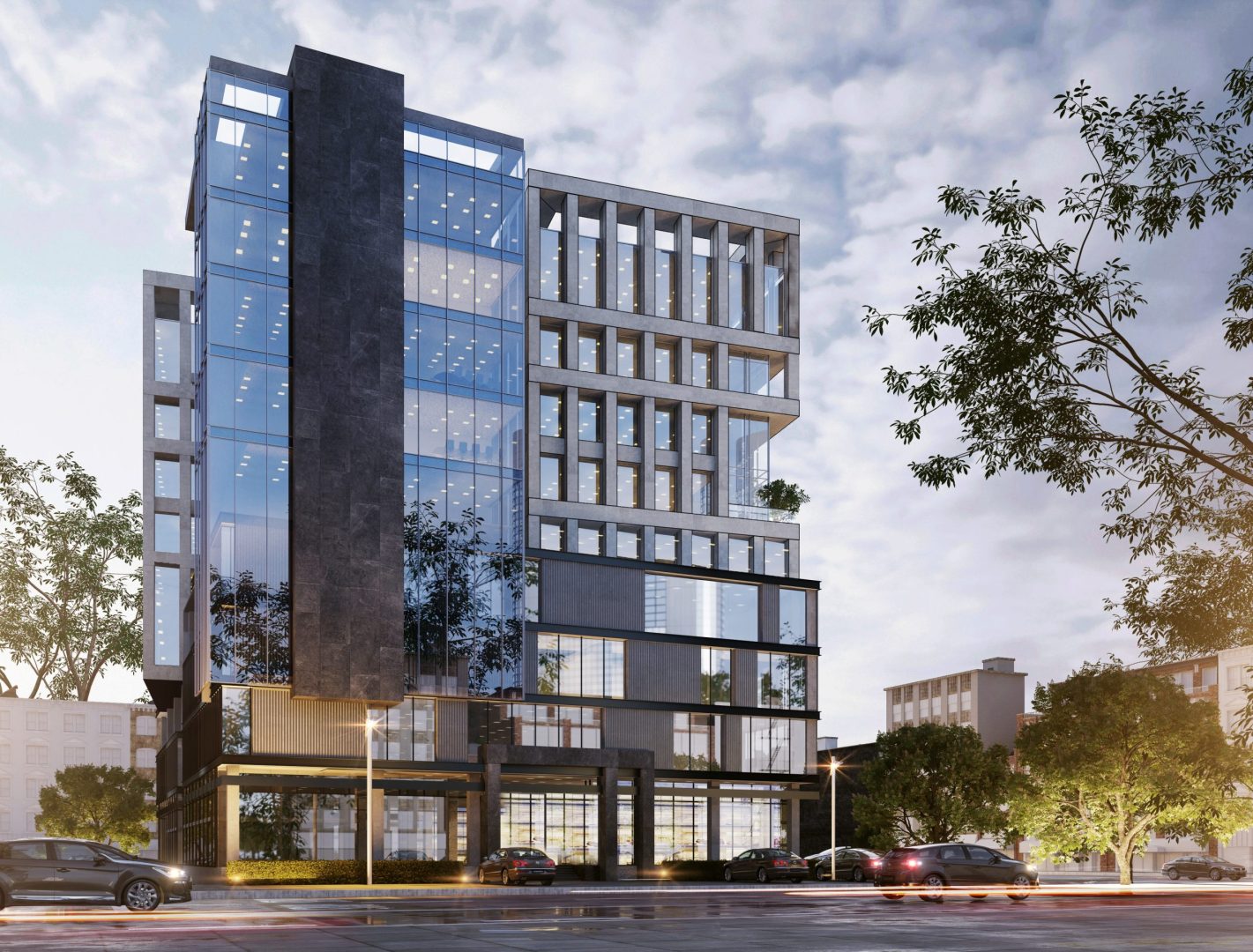 Enclosed in a concrete exoskeleton, the building peeks through its glass lens stripped in verticality. The building stands formally dressed for its functional language. The pockets envelope green spaces that act as the lungs for the built micro-environment. Unlike the usual typology, Corporate 5 sets to value its users for viable daily experiences in its best-served functional spaces, services, and crisp aesthetics.